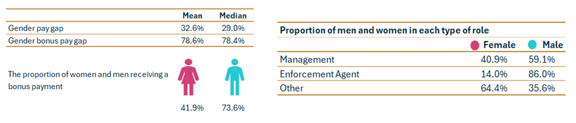 Enforcement agents earn bonuses based on amounts they collect and so will still typically earn more than staff undertaking general office roles. Therefore, as 39% of staff are enforcement agents, the people undertaking this role will continue to earn more in total and particularly in bonuses than other non-management staff. These individuals are predominantly male and therefore males as a group earn more in total and in bonuses than females. As part of our EDI commitment, we are actively encouraging more females into Enforcement agent roles.