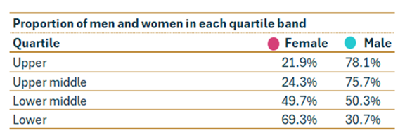 Although in any given role male and female employees earn the same basic salary and have the same bonus arrangements, they tend to undertake different roles (Opposite).